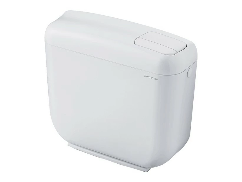 EUROPA Cassetta a zaino in ABS coibentata per WC monoblocco, meccanismo a doppio scarico, completa di placca di fissaggio e di rubinetto a squadra.