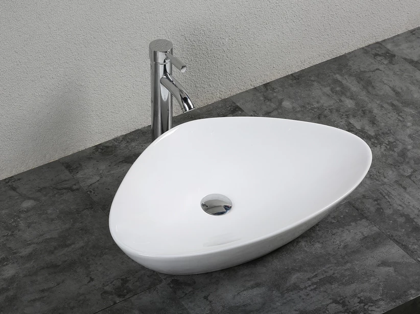 Lavabo Da Appoggio Panaro 59×39 H13,5 In Ceramica Bianco Lucido