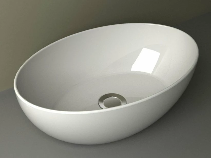 Lavabo Da Appoggio Piuma Ellisse 45X30 H14 In Ceramica Lucido Bianco