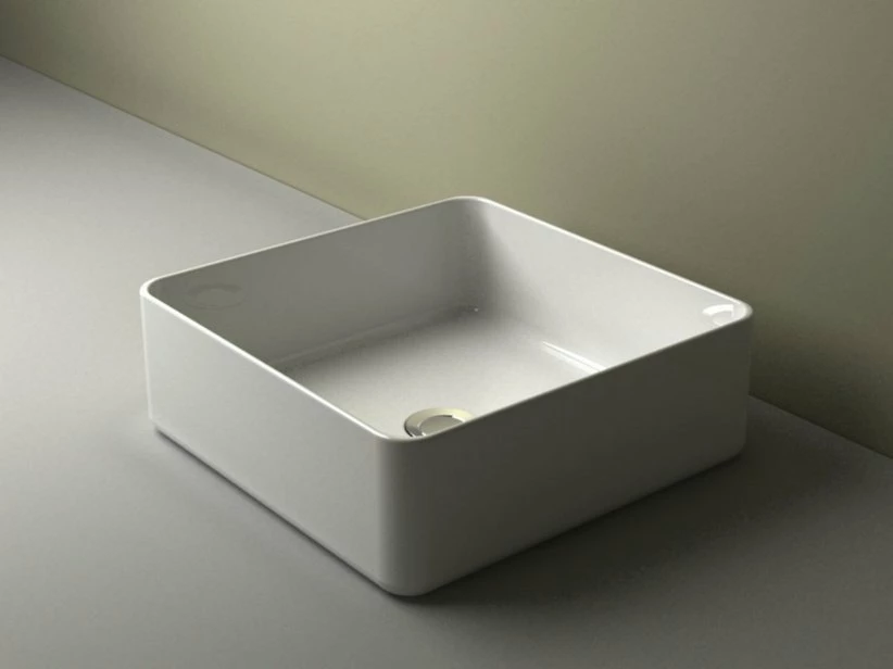 Lavabo Da Appoggio Piuma Quadrato 40X40 H12 In Ceramica Lucido Bianco