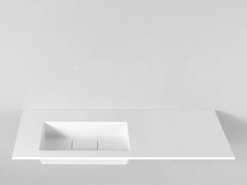 UNITOP HIDE lavabo in resina cm. 140,5×51,5 vasca sinistro con copripiletta – senza foro troppopieno – senza foro miscelatore (con predisposizione a 1 o 3 fori) – finitura bianco lucido – staffe di supporto non incluse e acquistabili separatamente