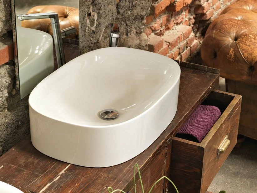 WILD lavabo appoggio cm. 60x40xH14 bianco lucido