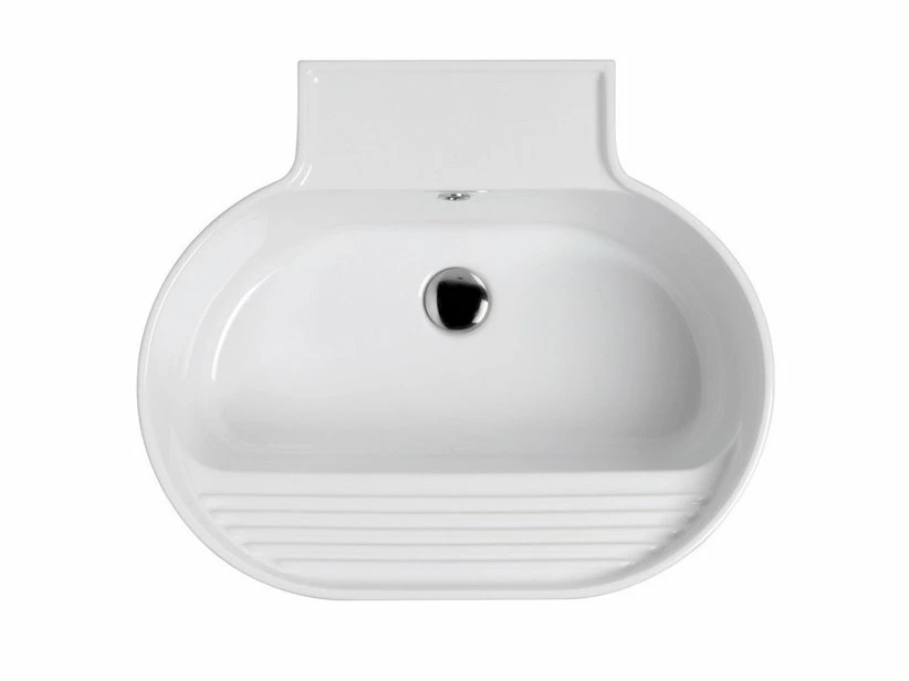 Lavabo lavatoio TINO cm. 60x50xH30 in ceramica con strofinatoio adatto per installazione in bagno o in lavanderia – bianco lucido