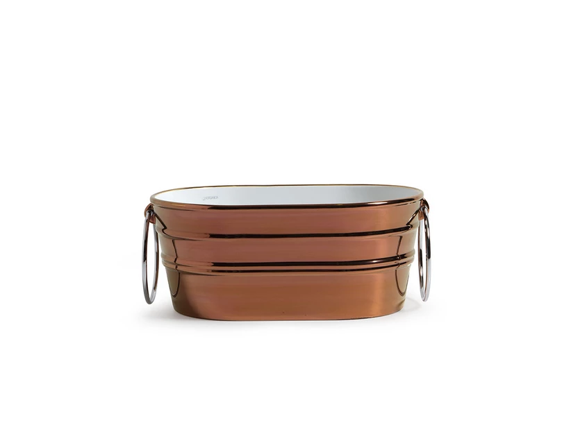 Tinozza lavabo-lavatoio design cm. 60×40 profondo h25 cm. con 2 anelli portasciugamano laterali in ottone cromato