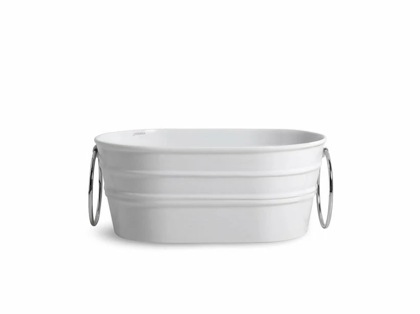 Tinozza lavabo-lavatoio design cm. 60×40 profondo h25 cm. con 2 anelli portasciugamano laterali in ottone cromato