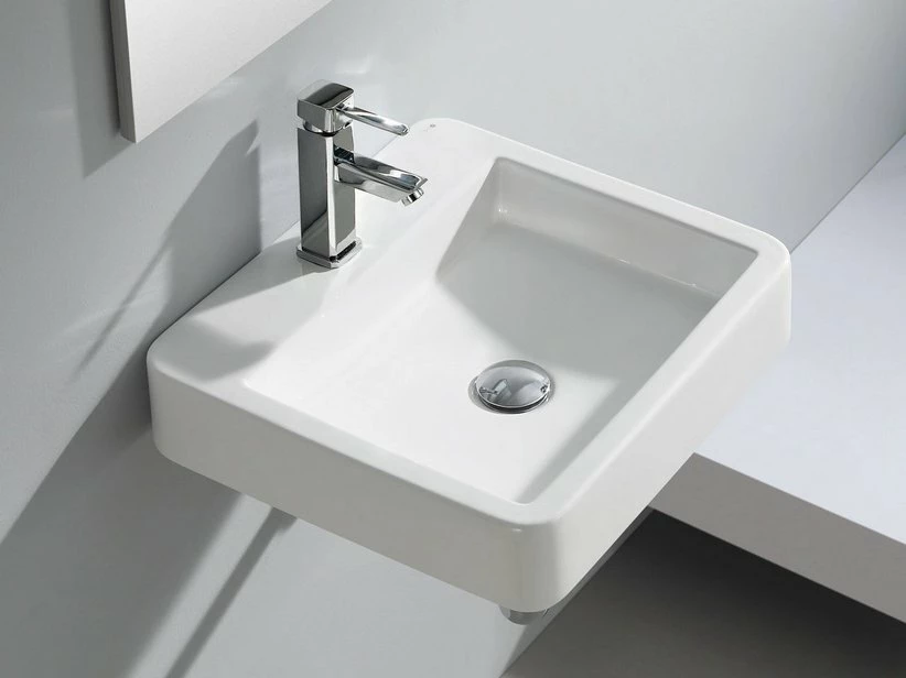 Lavabo d’arredo Somahoz cm. 45×42 H10 senza troppopieno – installazione in appoggio o sospeso – ceramica bianco lucido
