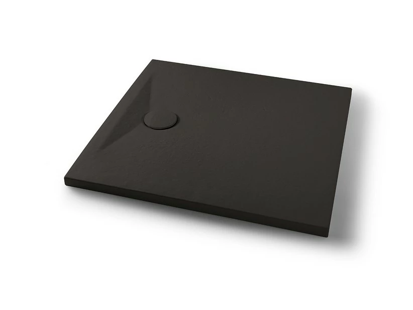 APPIA piatto doccia in ceramica cm. 90×90 H4 con antiscivolo effetto pietra a spacco finitura GRAFITE opaco – Piletta di scarico (ref. 71753) con Cover in ceramica tono su tono non inclusa e acquistabile separatamente