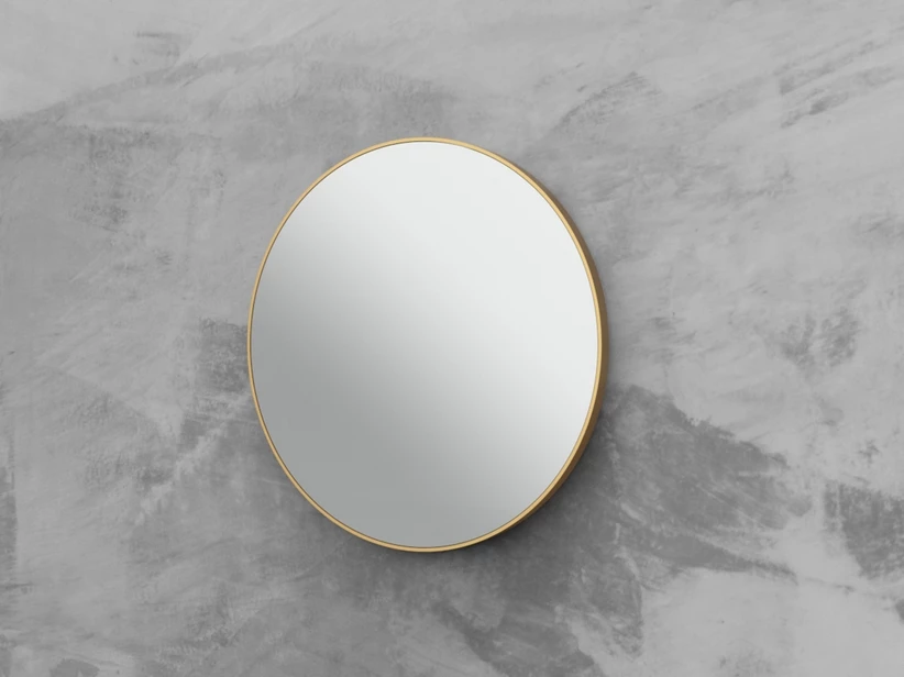 QUEEN Specchiera Tonda cm Ø60 cornice spessore 5 mm in acciaio verniciato oro opaco – staffa di predisposizione per abbinamento a lampada LED