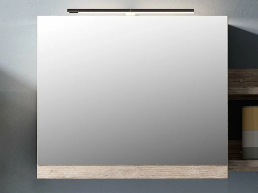SMART specchio contenitore cm. 59x17x H51 ad apertura frontale basculante con un ripiano interno in cristallo, in laminato antigraffio finitura natural oak