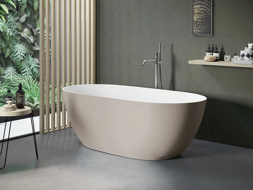 Vasca Freestanding Leo 160×74 Cm Esterno Beige Avena/Interno Bianco Opaco