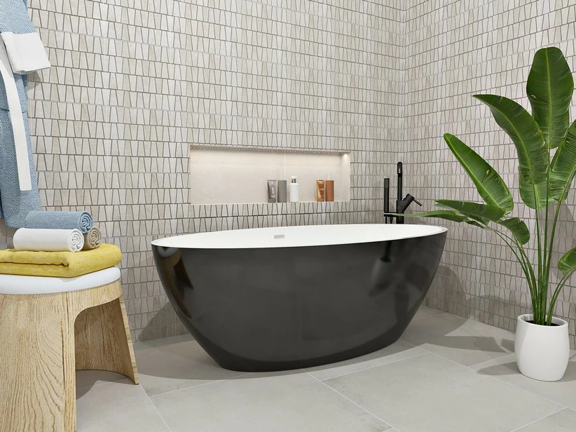 NEMO6 bicolor vasca freestanding in pietraluce interno bianco lucido / esterno nero base lucido